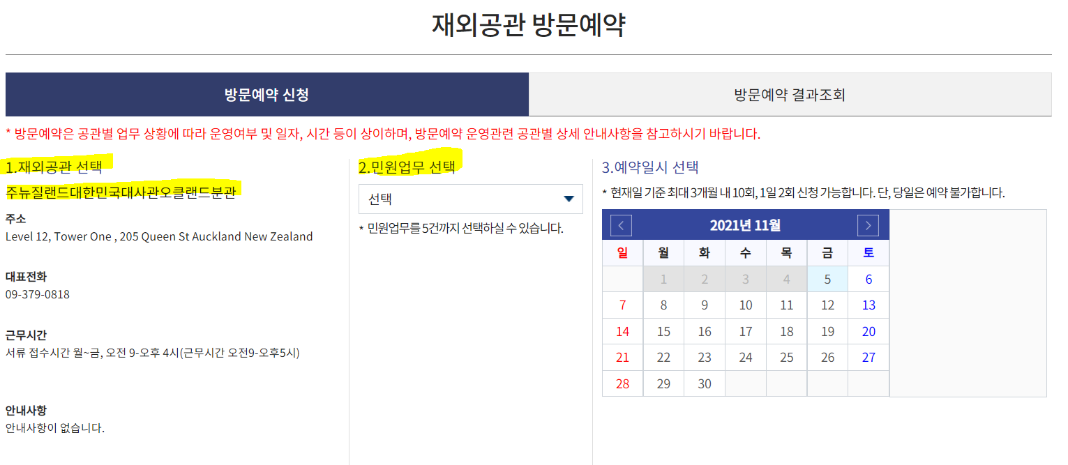 3. 재외공관 선택 : 주뉴질랜드대한민국대사관오클랜드분관