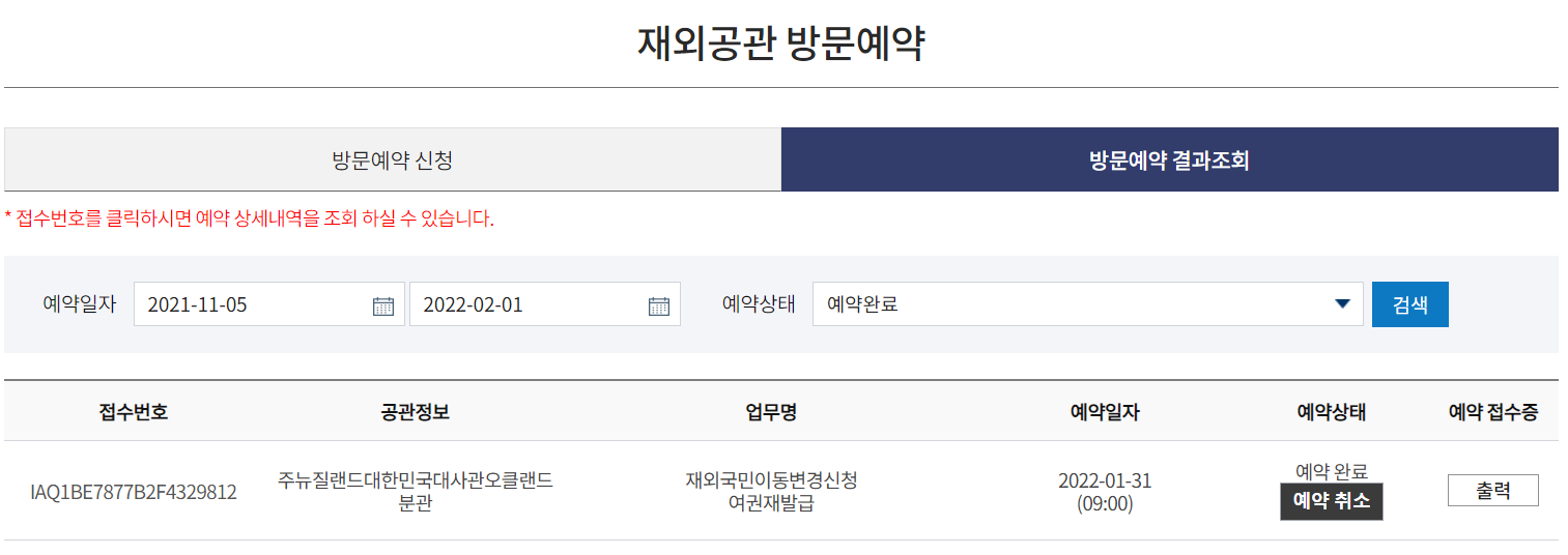 예약을 진행했던 영사민원24 페이지에서도 방문예약 결과조회를 할 수 있습니다.