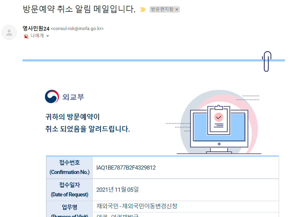 취소가 되면 또 이메일로 취소 알림 메일이 옵니다.