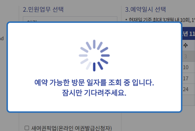 4. 민원업무 선택 (업무를 선택해야 날짜를 고를 수 있습니다.)