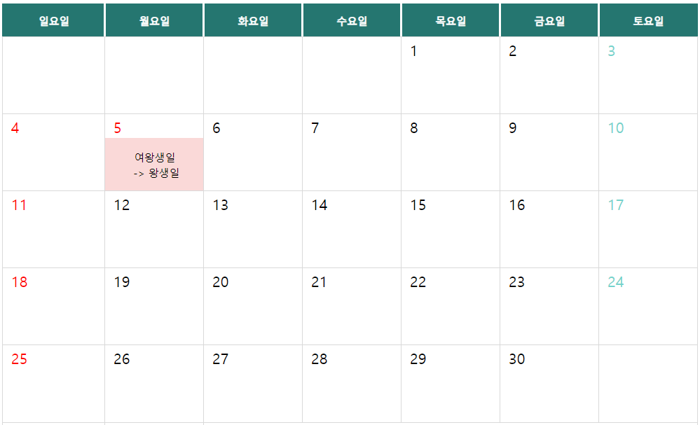 12월 : 25일(Christmas), 26일(Boxing Day)
