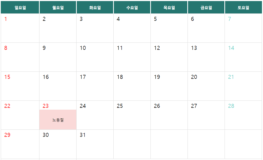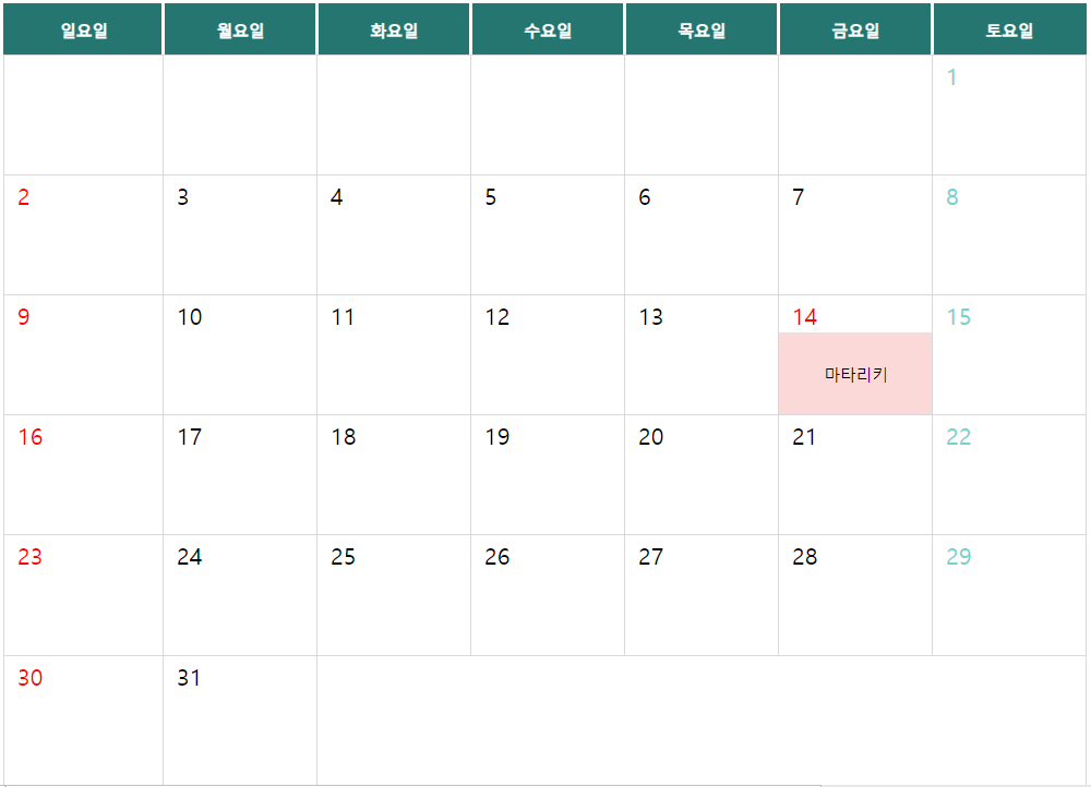 12월 : 25일(Christmas), 26일(Boxing Day)